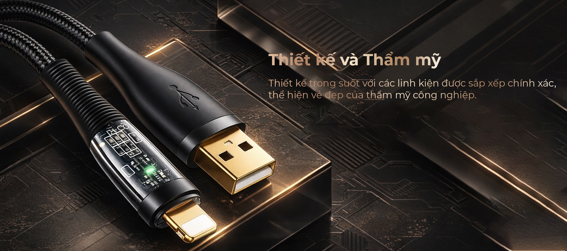 Thiết kế lộ mạch ấn tượng: Đầu cáp Lightning được làm trong suốt, lộ bảng mạch cực chất và hiện đại.