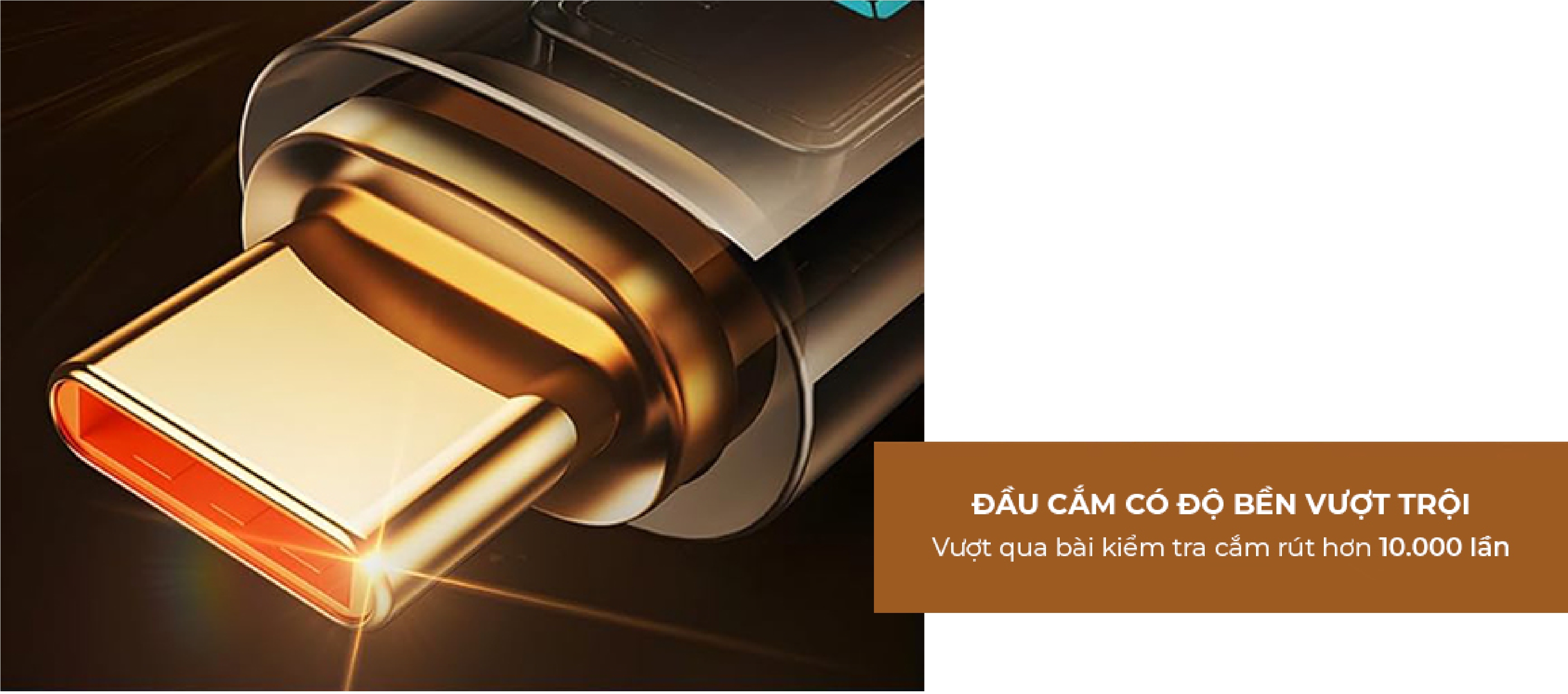Lõi dẫn chất lượng: Sử dụng đồng mạ thiếc giúp truyền dẫn tín hiệu ổn định, giảm nhiệt độ khi sạc công suất cao và bảo vệ tuổi thọ pin.