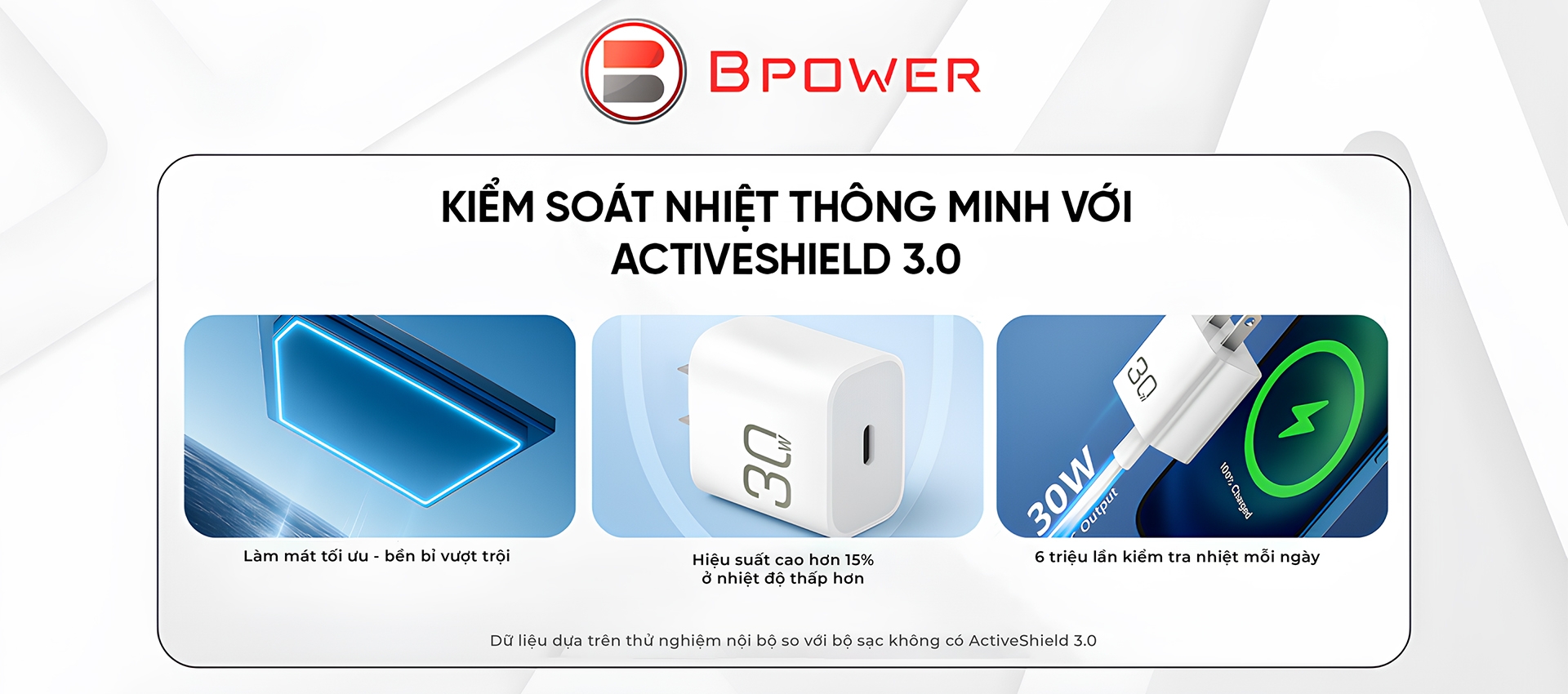 Củ sạc Bpower 30W được trang bị công nghệ Power Delivery (PD) mạnh mẽ. Thiết kế mạch tích hợp thông minh (hình ảnh ) cùng hệ thống bảo vệ 5 lớp an toàn.