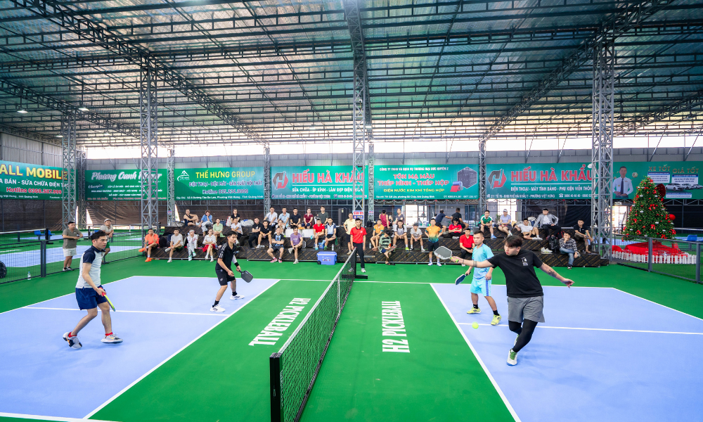 Nằm trong khuôn khổ sự kiện, giải đấu Pickleball Offline Mobile Quảng Ninh 2025 đã mang đến một làn gió mới đầy năng động. Tại cụm sân H2 Pickleball, các "ông chủ" cửa hàng điện thoại đã rũ bỏ vẻ ngoài bận rộn thường ngày để hóa thân thành những vận động viên thực thụ.
